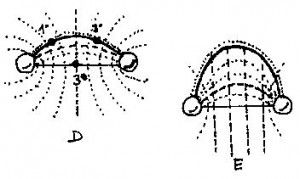 LIGNES USDOUOO (ISODYNAMIQUES) de couleur orange sur l’original, vous pouvez observer que dans l’image D elles sont divergentes et dans l’image E parallèles. (….).